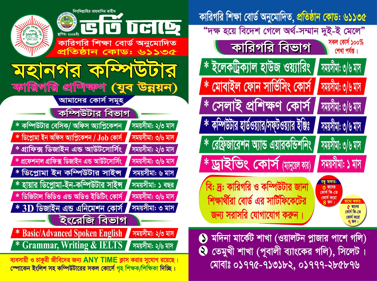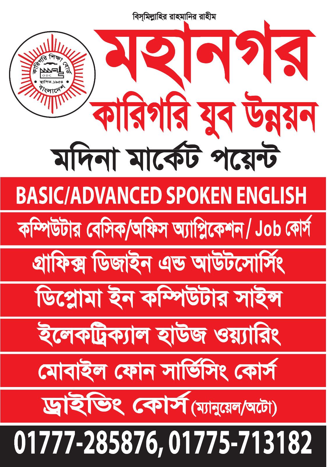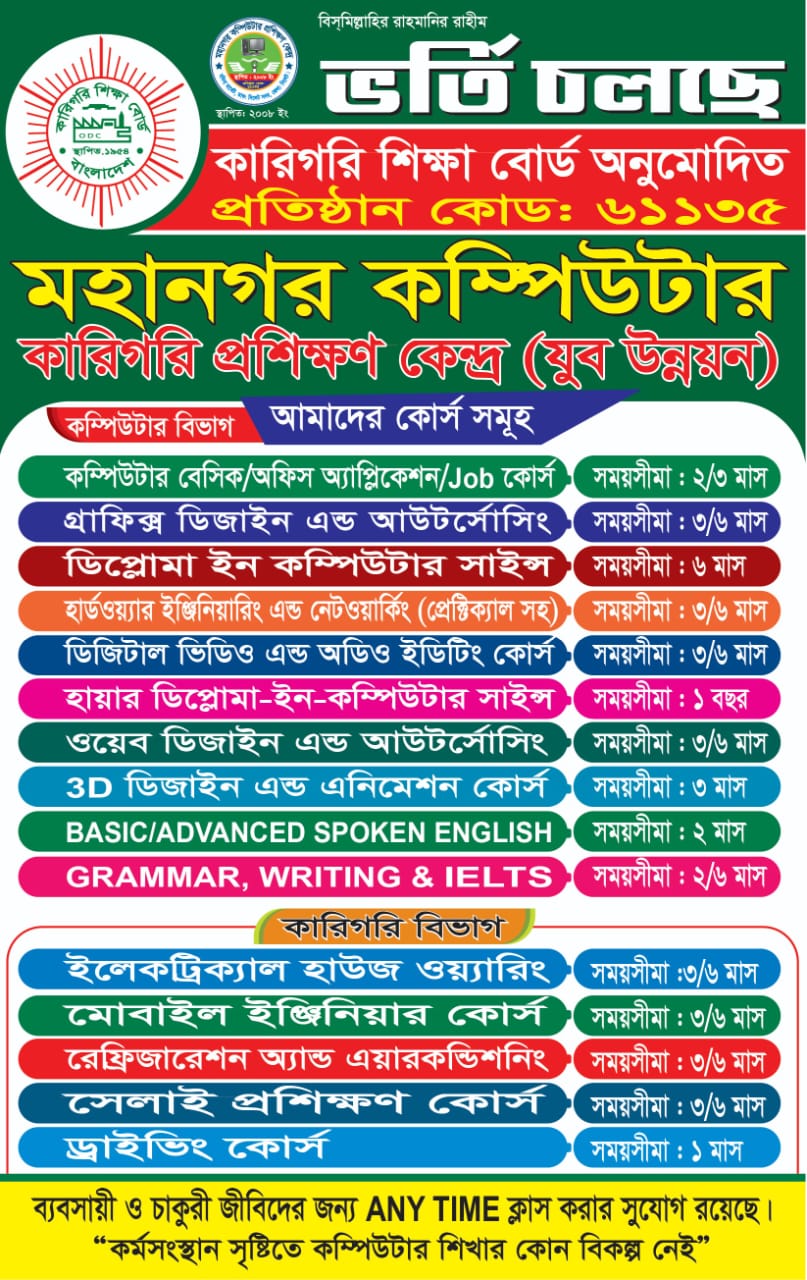 | ভর্তি চলছে --- আজই আপনার কাঙ্খিত কোর্সের জন্য যোগাযোগ করুন, অথবা কল করুন। |